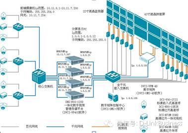 在存储空间方面,D-Link部署了4台一体化数字视频管理储存平台,从而可以保障前端视频顺畅的管理、转发。同时共安装了64块2TB硬盘,可以提供100TB的视频存储空间。