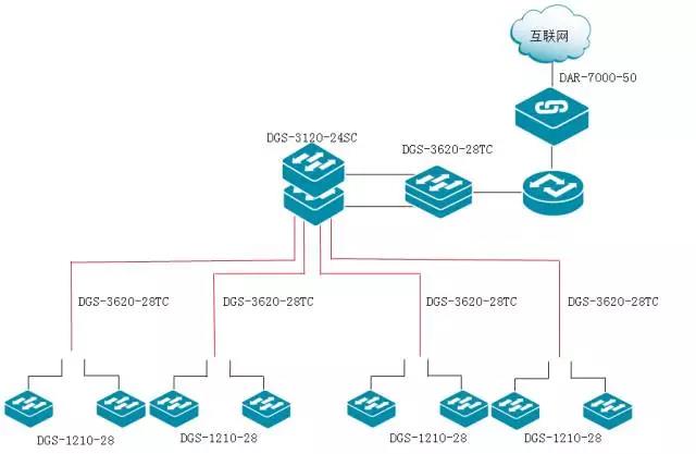 其中,安防系统、公共广播系统、信息发布系统等全部采用纯IP架构方案,因此对基础承载网络的要求非常高,整个承载网要具备优秀的处理性能及安全特性。面临繁杂且高质量的需求,D-Link的全网优势得以凸显,项目工作人员采用DGS-3120-24SC堆叠组,达到近乎机箱交换机的性能,可满足日后的扩充需求。每栋建筑设置汇聚交换机,采用单台DGS-3620-28TC,下连多台DGS-1210-28接入交换机。通过优质的产品表现和网络部署,完美达到了学校所需的网络需求。